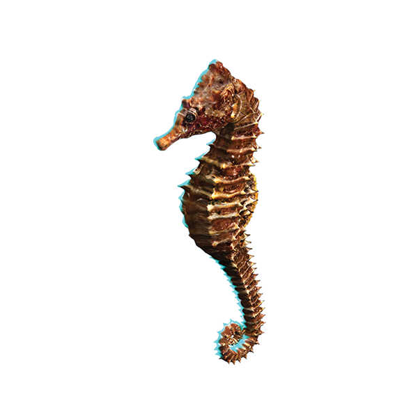 It is the male seahorse, rather than the female, who becomes “pregnant.” The female deposits around 1,500 eggs in the male’s brood pouch, where they are fertilized and nurtured for roughly 20-21 days before hatching. When the juveniles are ready to hatch, the male attaches its tail to a stationary structure and begins to arch its back, back and forth, releasing the juveniles into the water column.