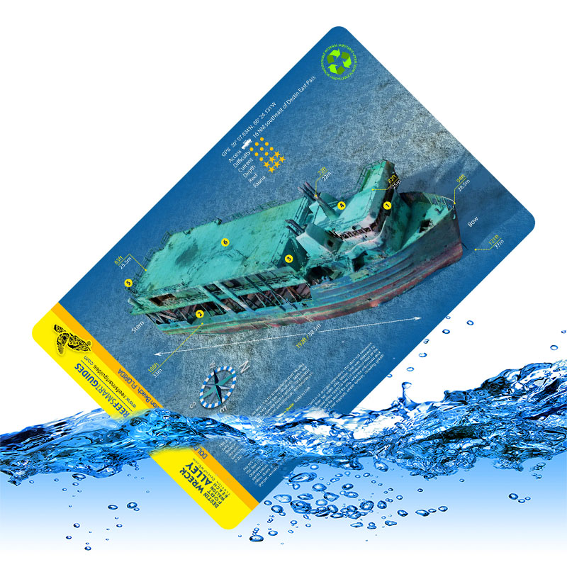 Exploring a new environment is an exhilarating experience. But there’s just so much to see and it can be hard to remember all the key information about a reef or wreck when you finally head into the water. Having that information readily available while in the water can improve safety and vastly improve your experience. Our waterproof cards are printed on plastic or laminated synthetic paper so that you can take them with you while you dive or swim. Each card includes valuable information such as: