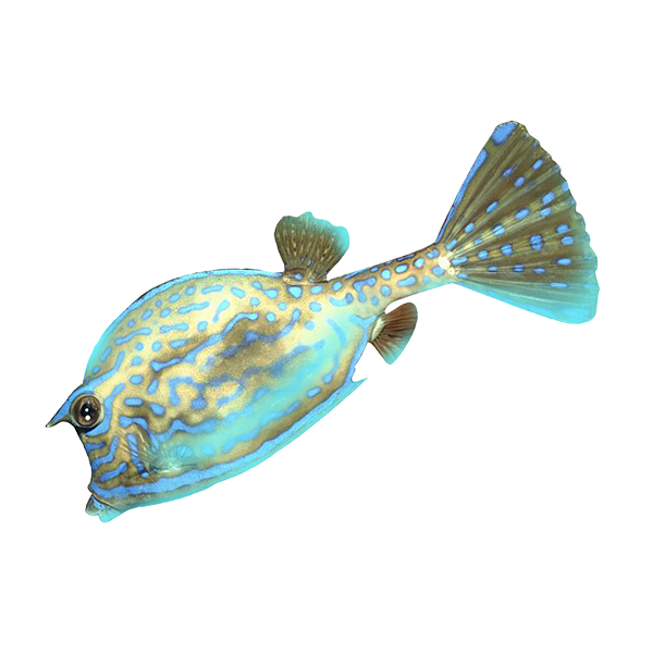 Scrawled cowfish are a colorful member of the boxfish family. They are protected by a set of rigid, hexagon-shaped dermal plates and a pair of horns on their heads that look like cow horns. These slow-moving fish feed on sponges, tunicates and shrimp as well as gorgonians, and sea anemones.
